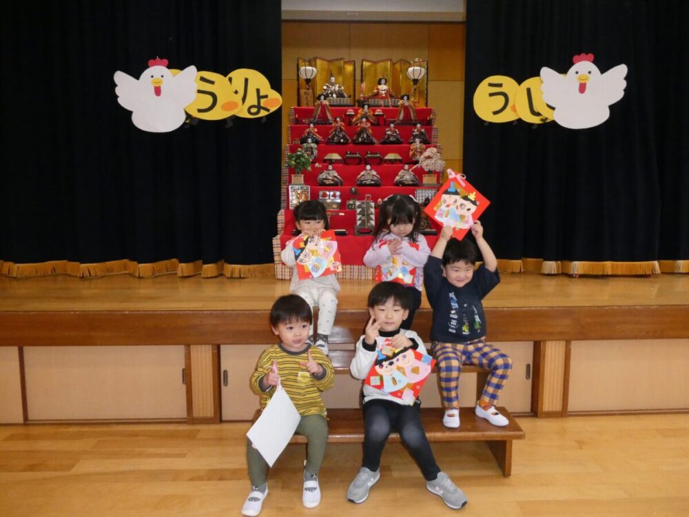 上手にできたひな祭り製作、「女の子はママ、男の子はぼく」と微笑ましい一面も見れました。