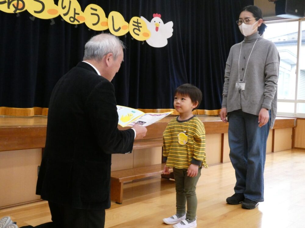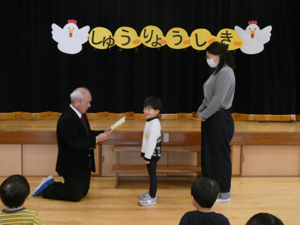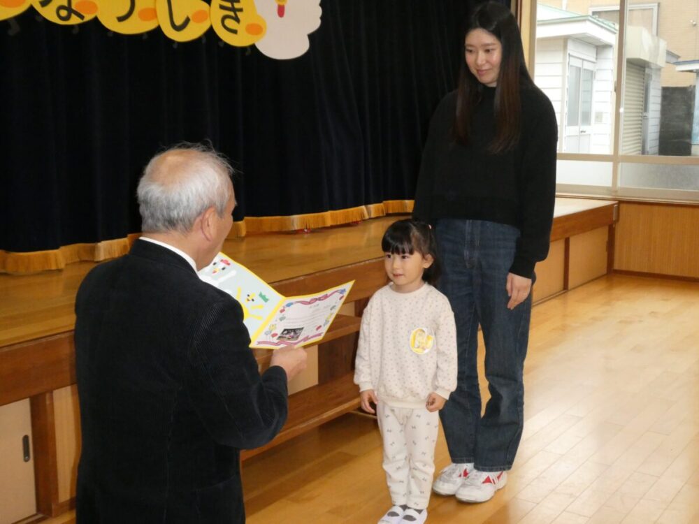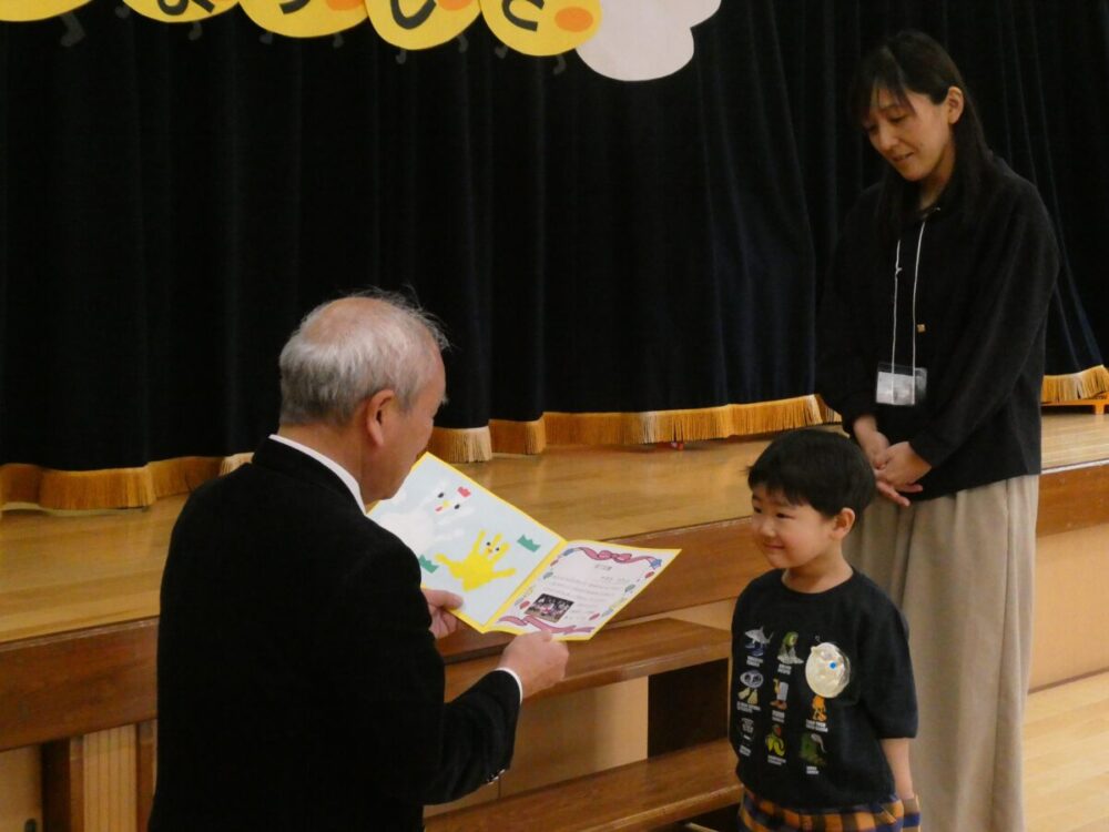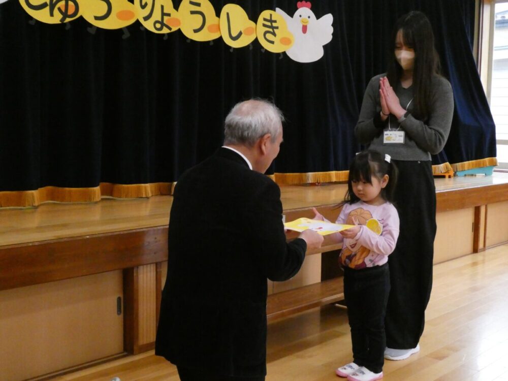 園長先生から修了証書を一人ずつもらいます。