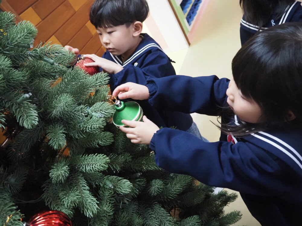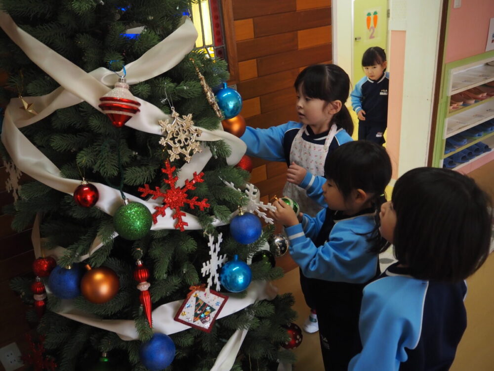 まず第1弾はクリスマスツリーの飾り付けをみんなでしました。