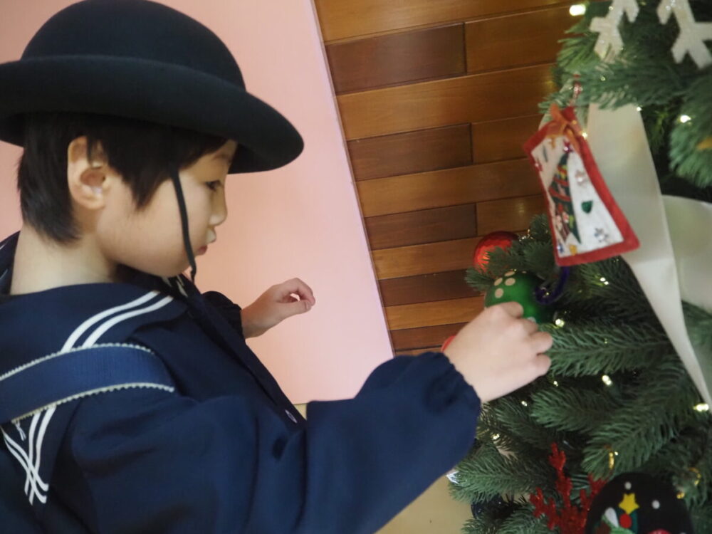 みんなで飾り付けしたツリーも完成しました!サンタさん来てくれますように!