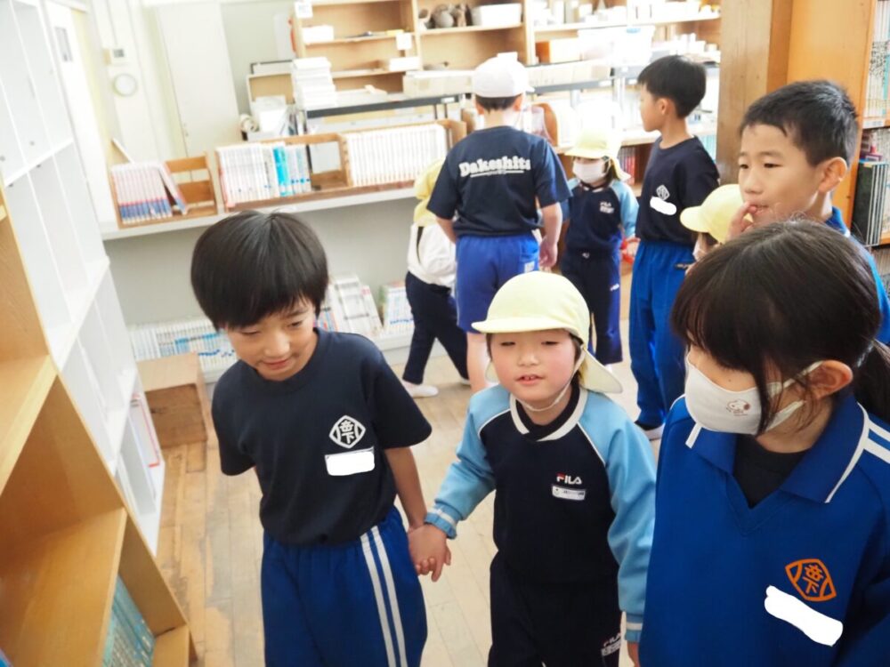岳下少の三年生、お兄さん・お姉さんが小学校の中を案内してくれました(#^^#)