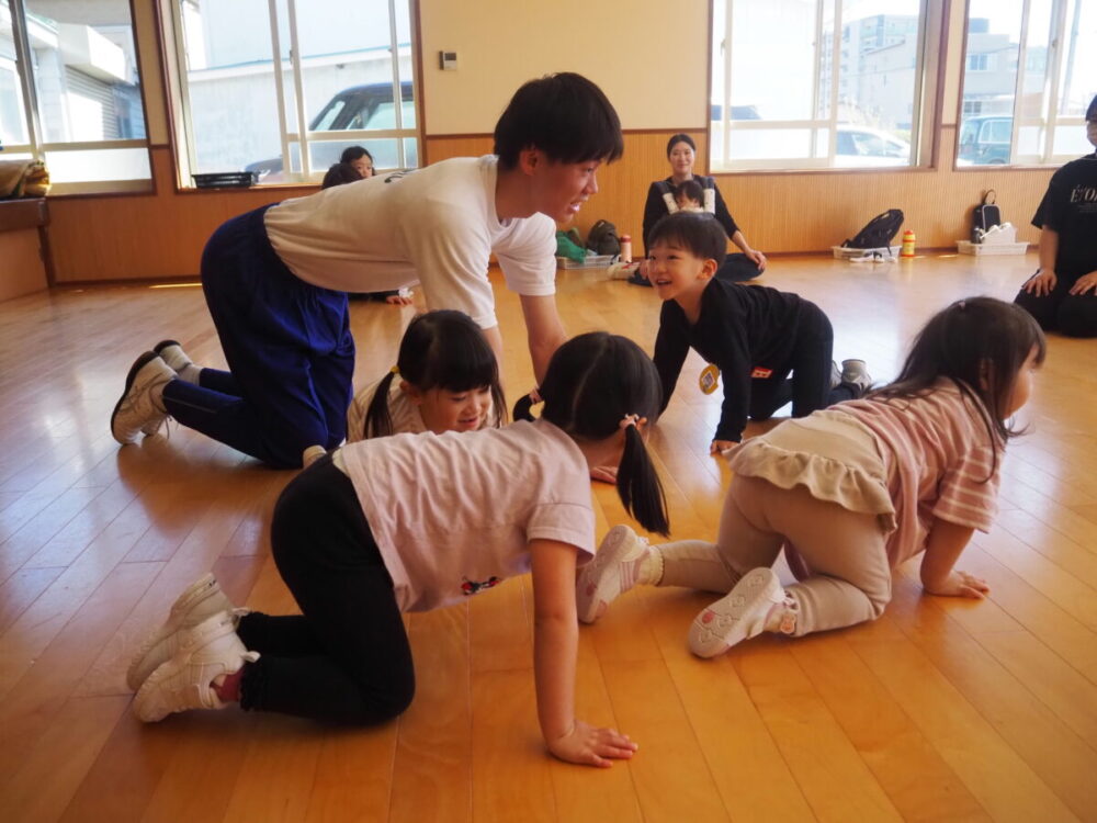 今回は体育教室を行いました。コスモスポーツクラブの「鈴木先生」と一緒に楽しい体育教室を行いました。
