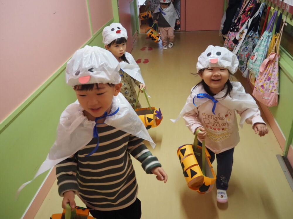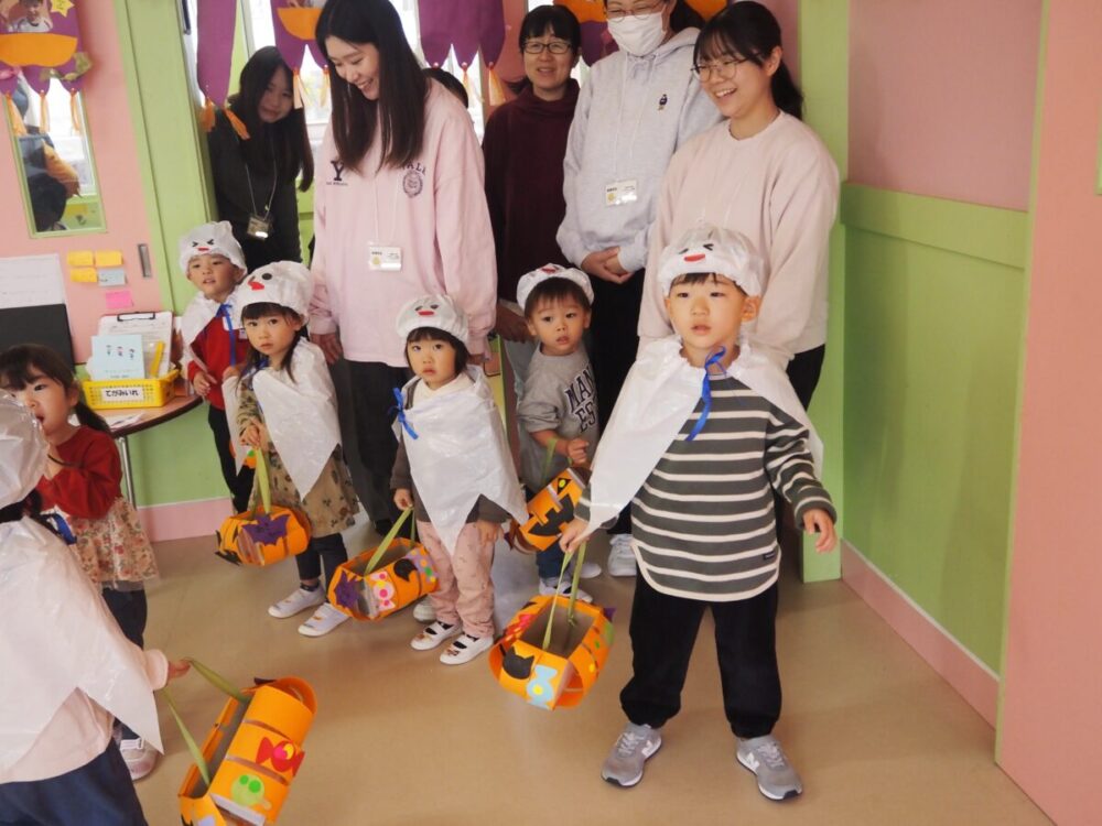 いざお菓子をもらいにお化けに仮装して出発です!!
