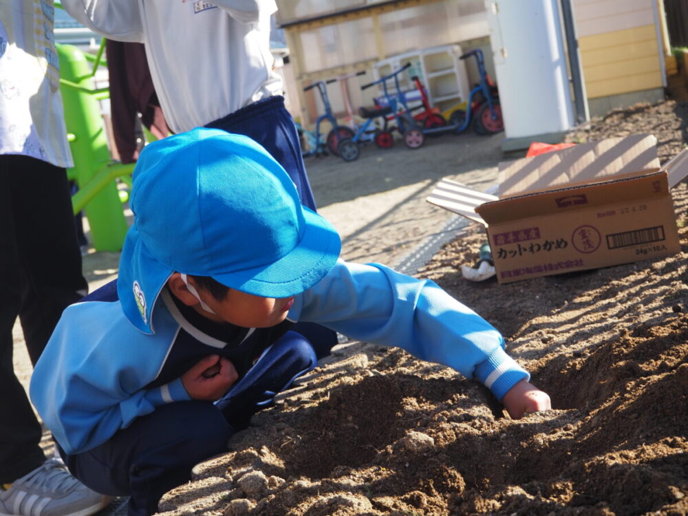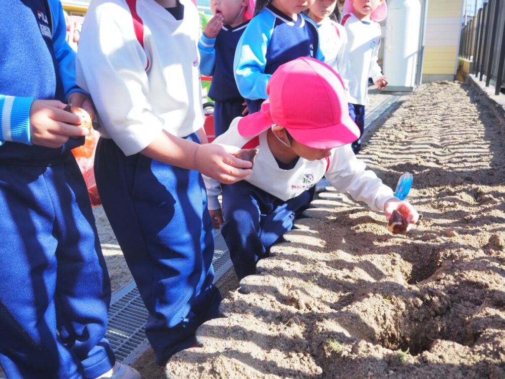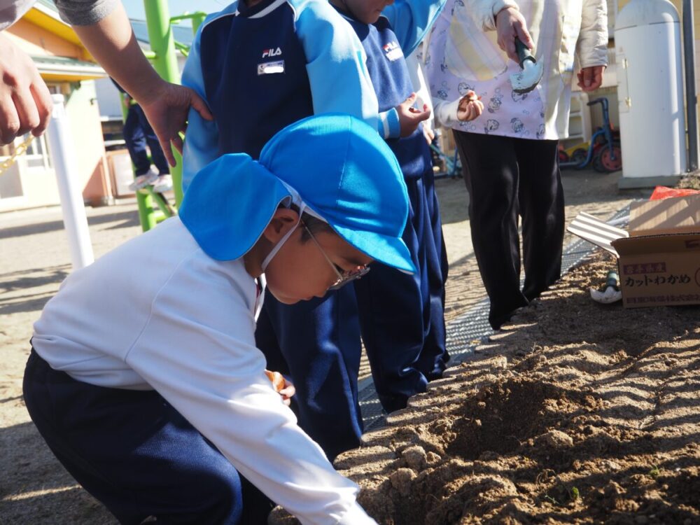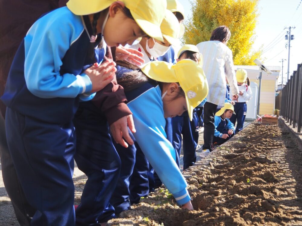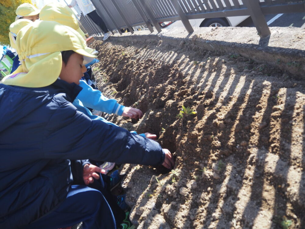 「綺麗に咲きますように」「何色のチューリップが咲くかな~?」と話しかけながら植えました(#^^#)