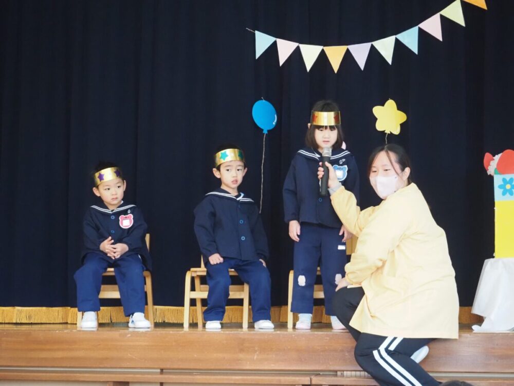 皆の前に立って緊張するけど、上手にインタビューに答えることができました(^▽^)/