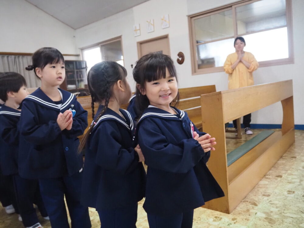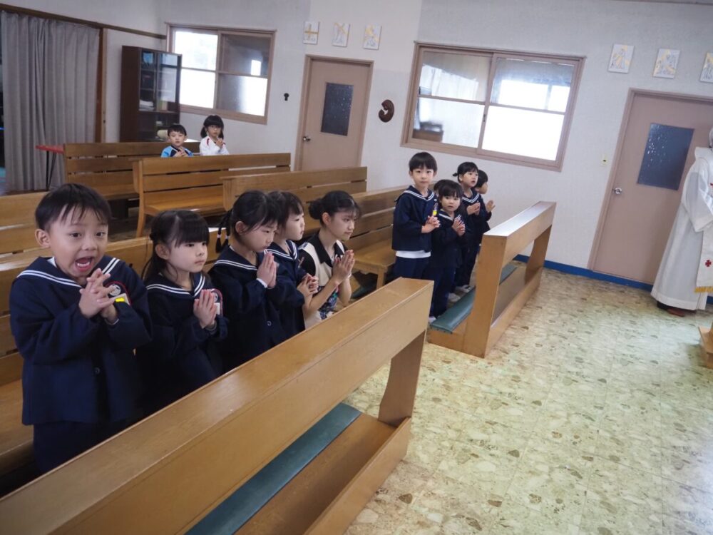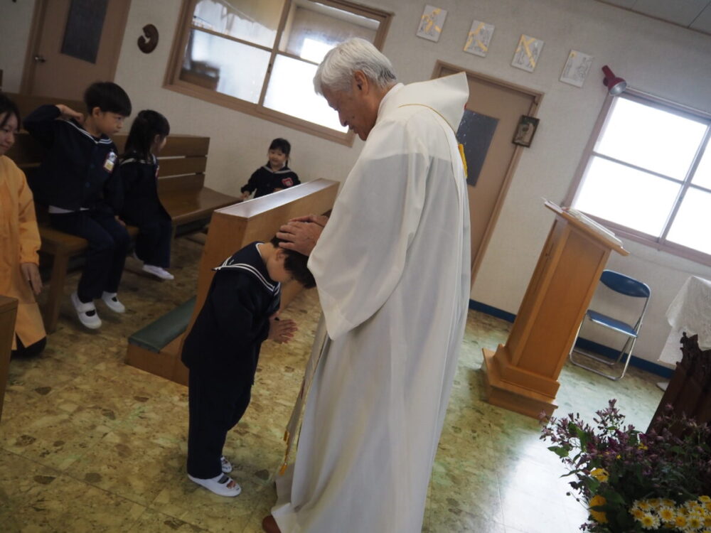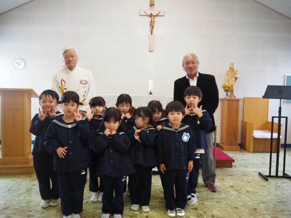 お誕生会の前に教会へ行き、神父様から祝福を頂きました。